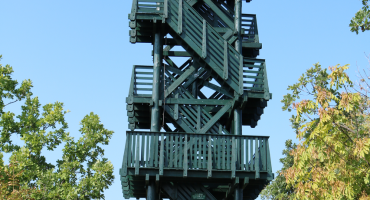 A kilátó Vonyarcvashegy felett, a Vas-hegyen, 225 méter magasságban …