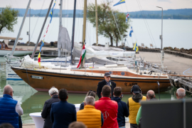 Mostanra lezajlott az első földkerülő magyar hajó külső és belső restaurálása, újra vitorlát bontott a Szent Jupát a révfülöpi Cholnoky Jenő kikötőben.